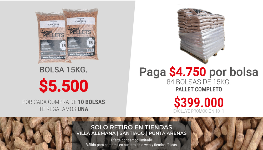 Pellets de Madera Nativa (Lenga) con excelente poder calorífico.